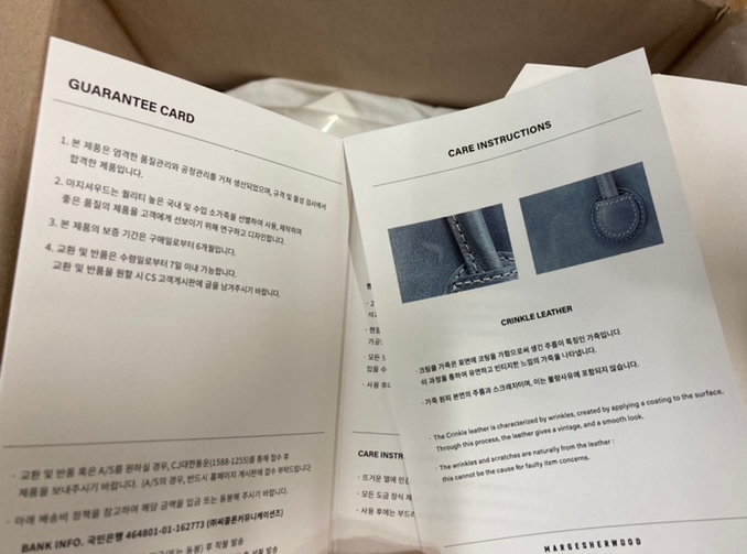 뭐 개런티 카드랑 주의사항 같은 거였다.