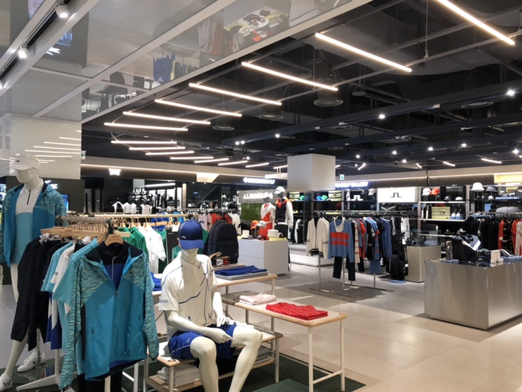 7층엔 스포츠 의류/골프 웨어 등을 판매하고 있음.