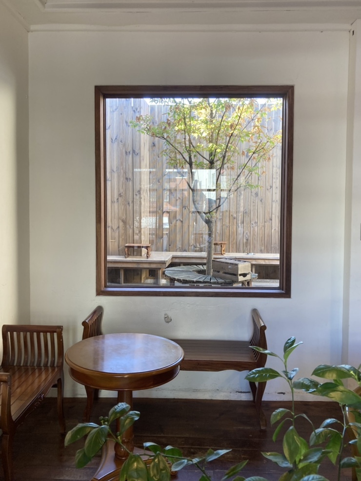 요 야외 테라스에서 카페 안을 바라보면 이런 느낌이다!