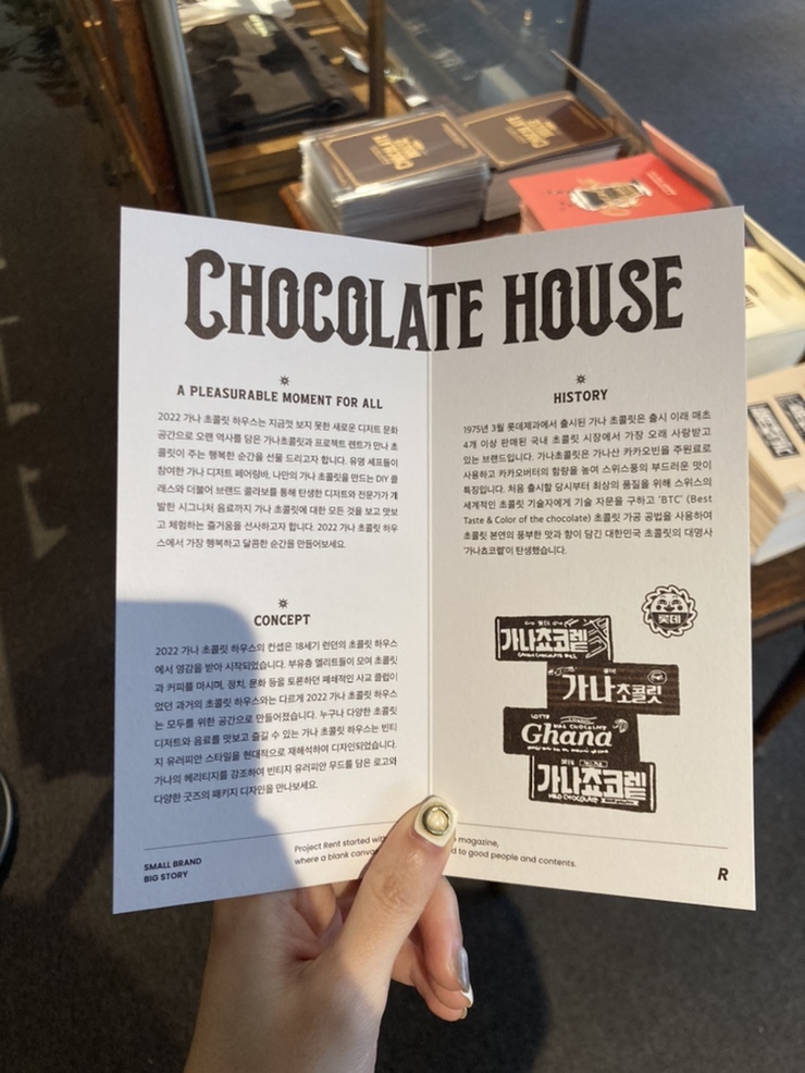 가나초콜릿하우스에 대한 설명이 뒤에 써있었다.