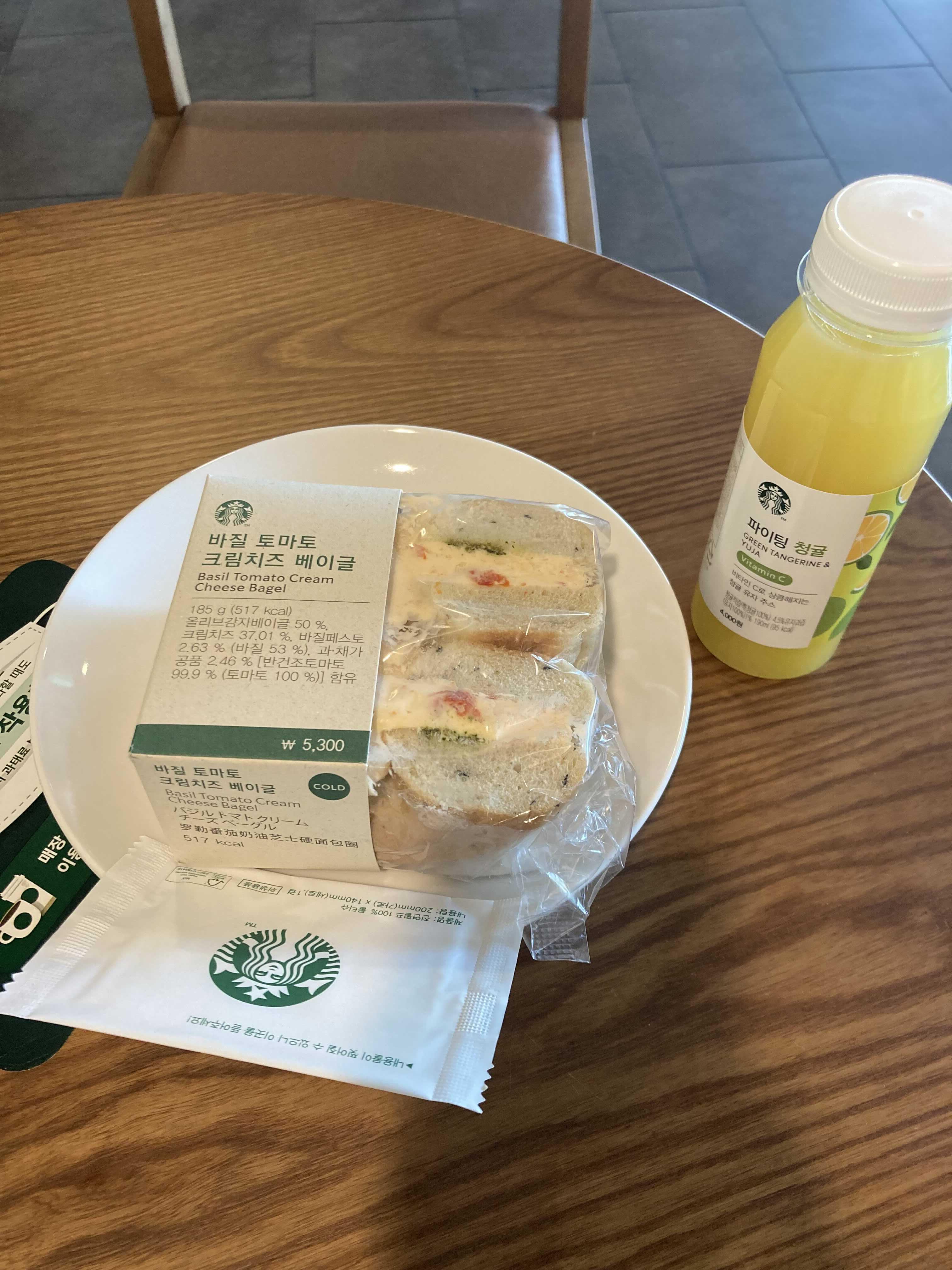바질 베이글에 청귤주스를 같이 마셔준다 ㅋㅋㅋ