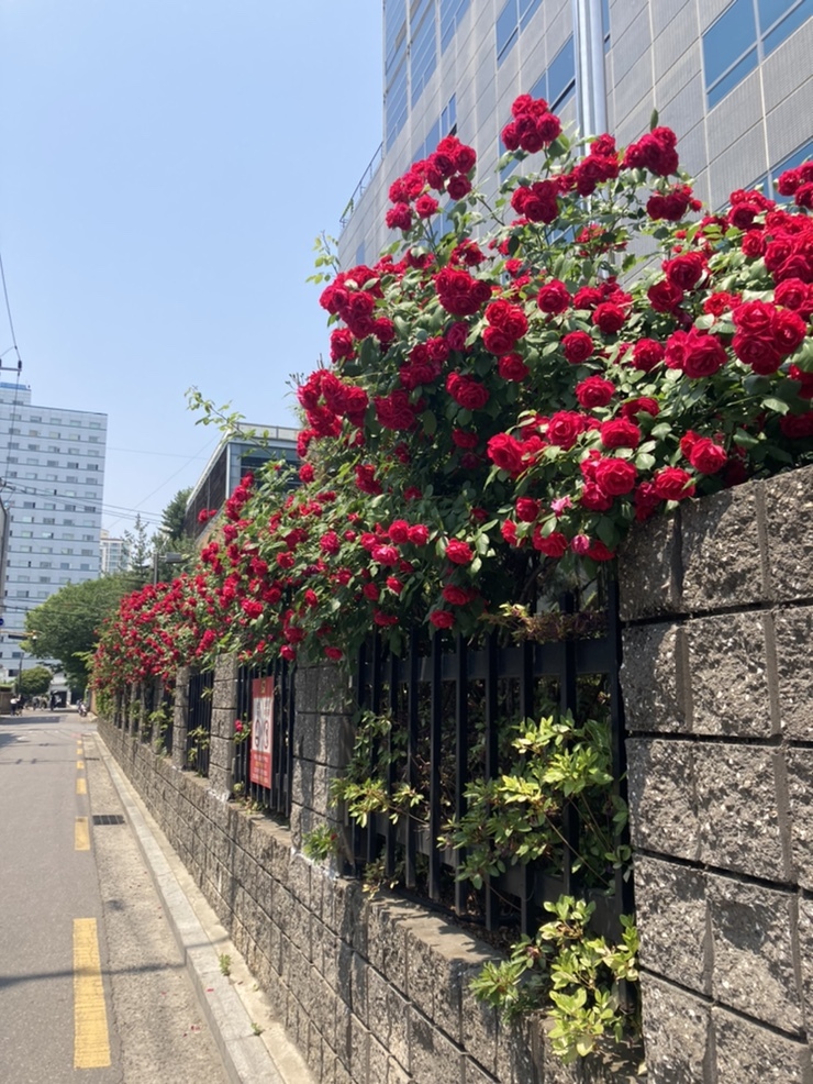 특히 출근길에 장미가 색색이 핀 곳이 있는데