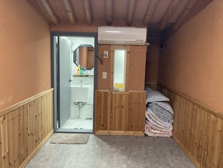 저기 보이는 침구를 펴서 쓰는 형태였다.