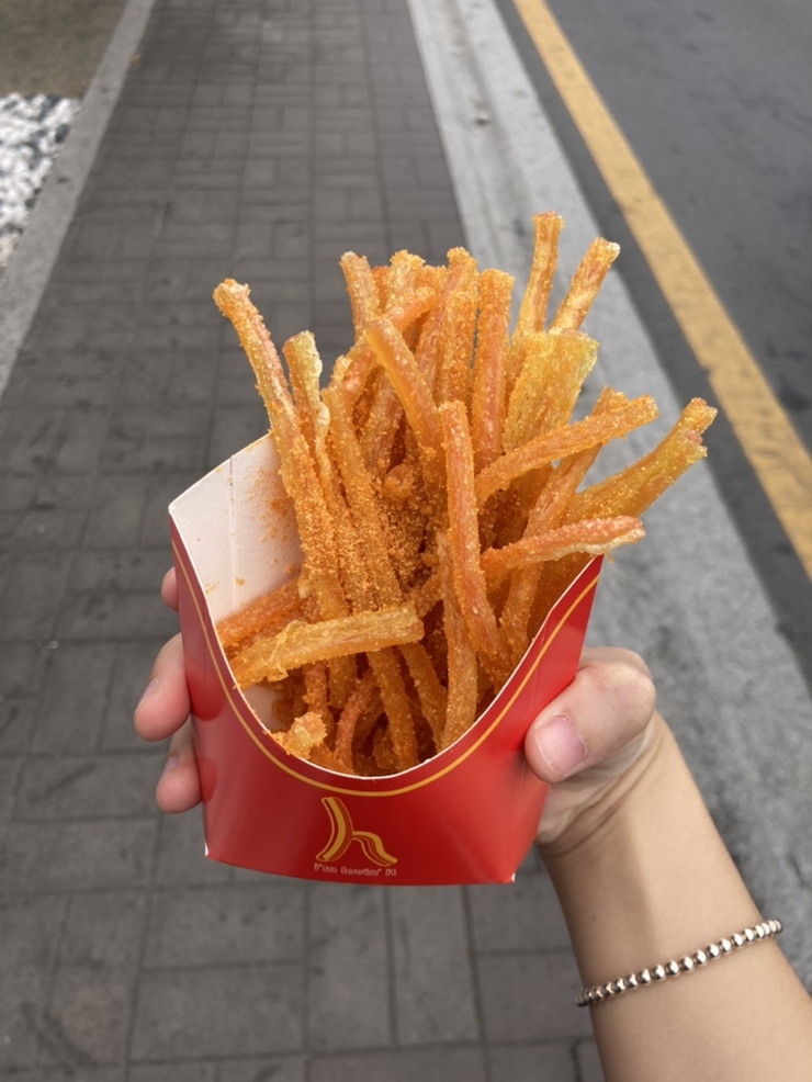 쫀디기를 튀긴 건데 + 거기에 롯데리아 양념감자 소스 묻힌 맛이다.
