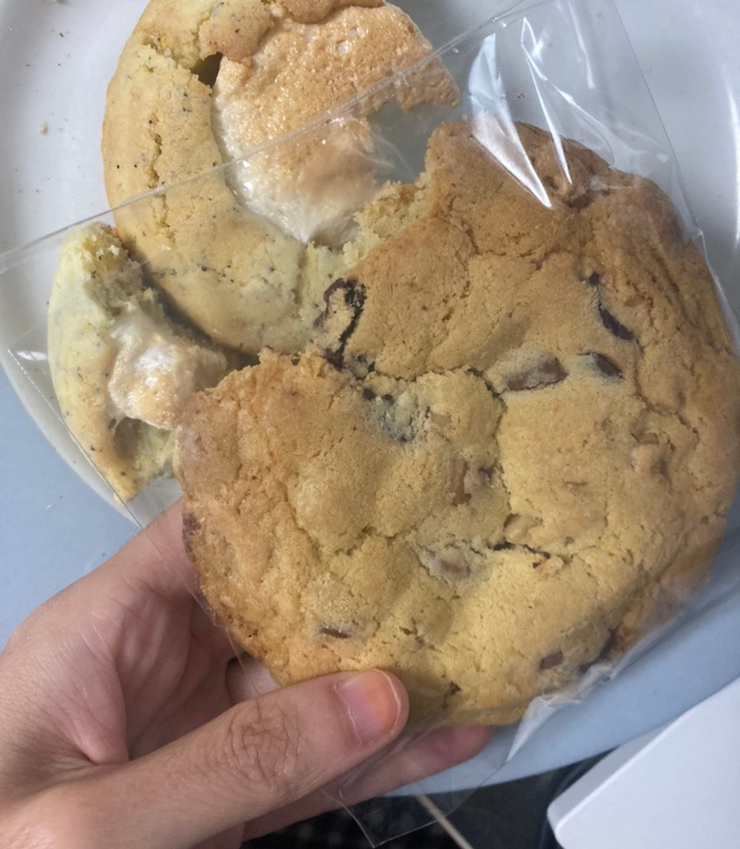 초코가 살짝 녹아져 있어 쿠키를 손으로 자르면