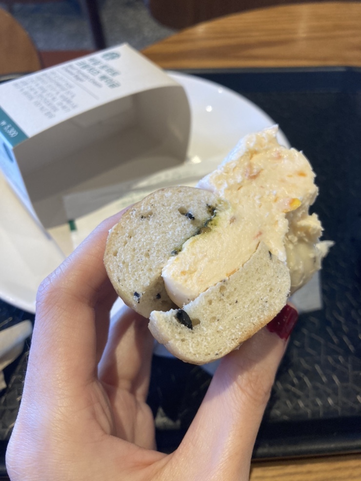 오랜만에 먹은 스타벅스 토마토바질베이글!