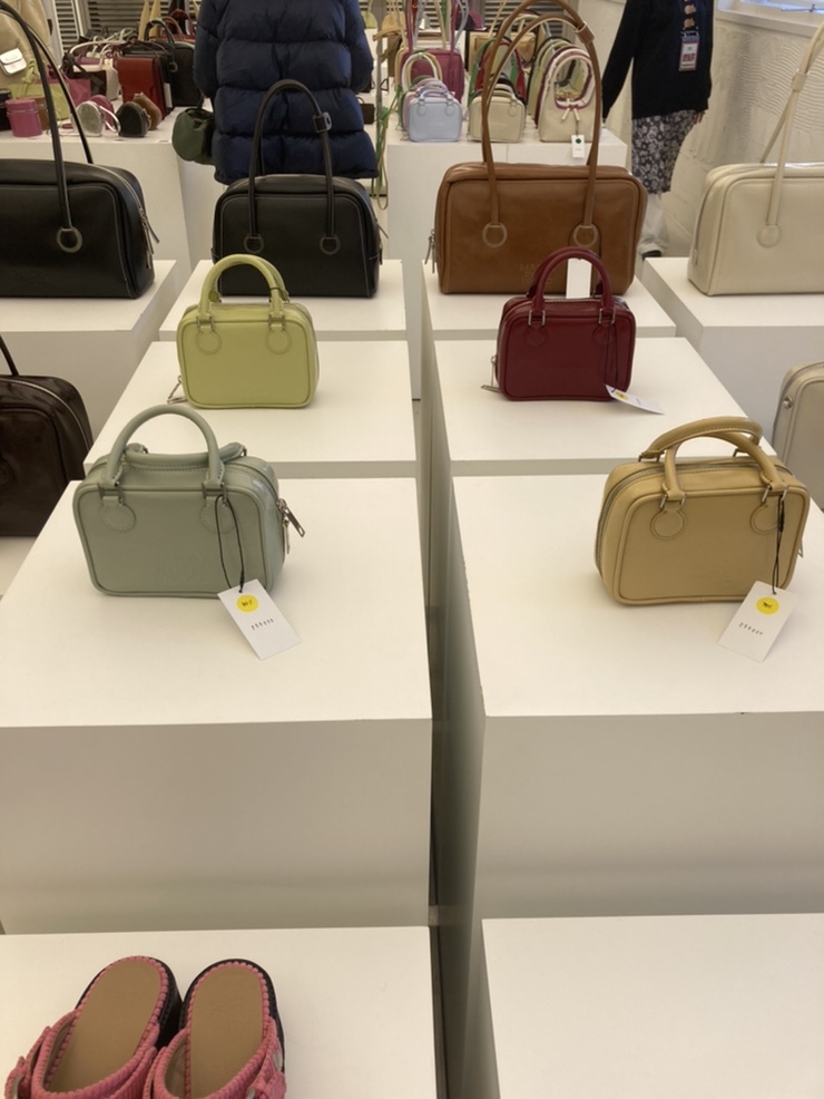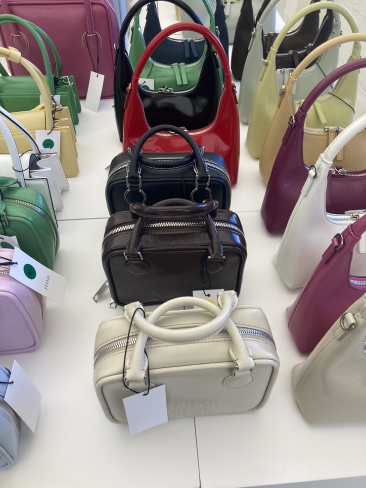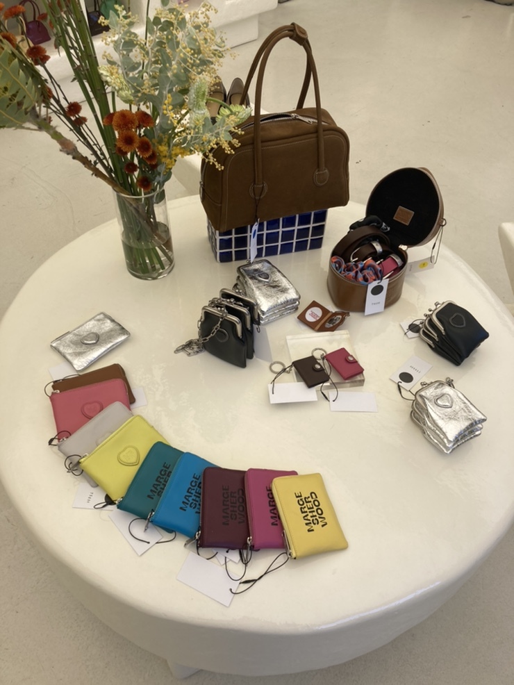 지갑 외에도 마지셔우드 가방들이 빽빽하게 컬러별로 디피되어 있어서