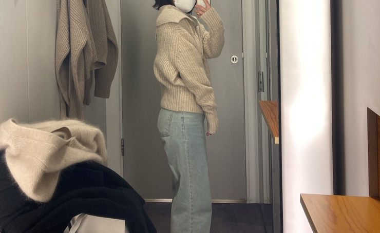 입으면 옆에서 봤을 때 목부분 니트가 되게 많이 올라와서 목이 짧아보이는 느낌이 들었다.