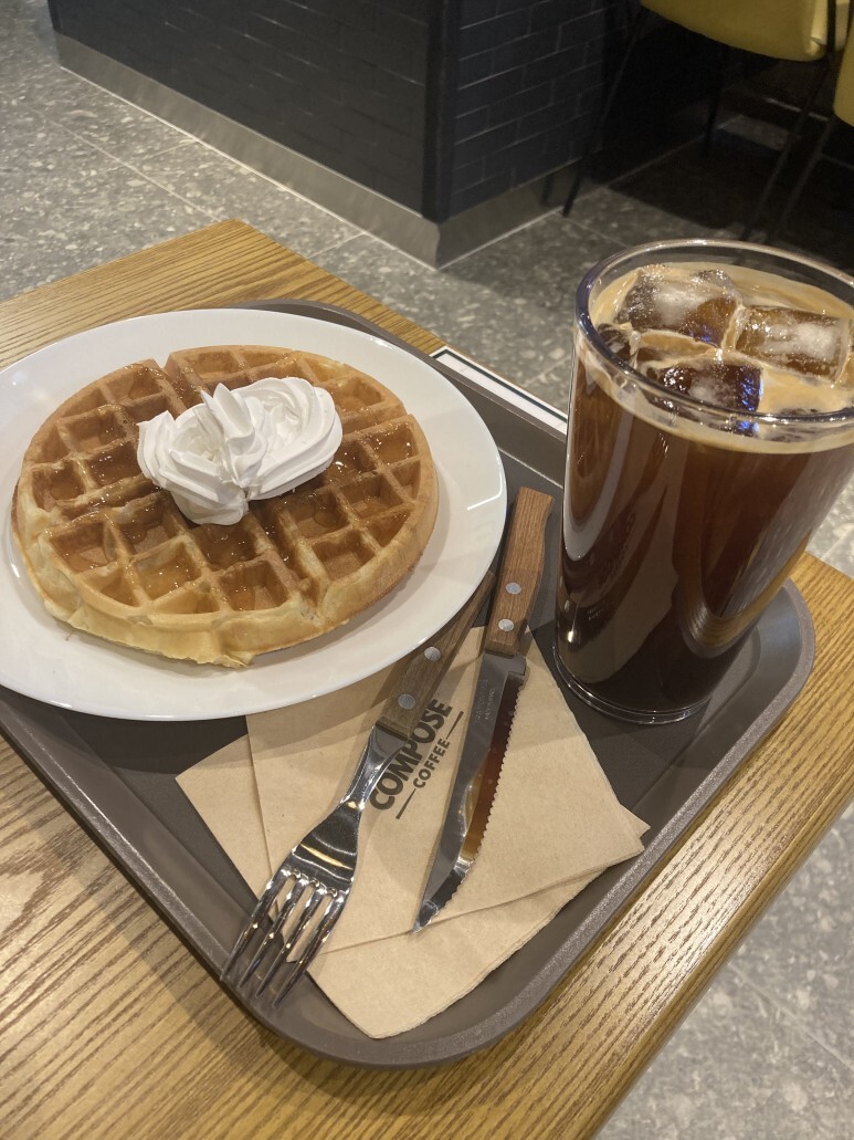 카페가서 커피랑 와플 시키기.
