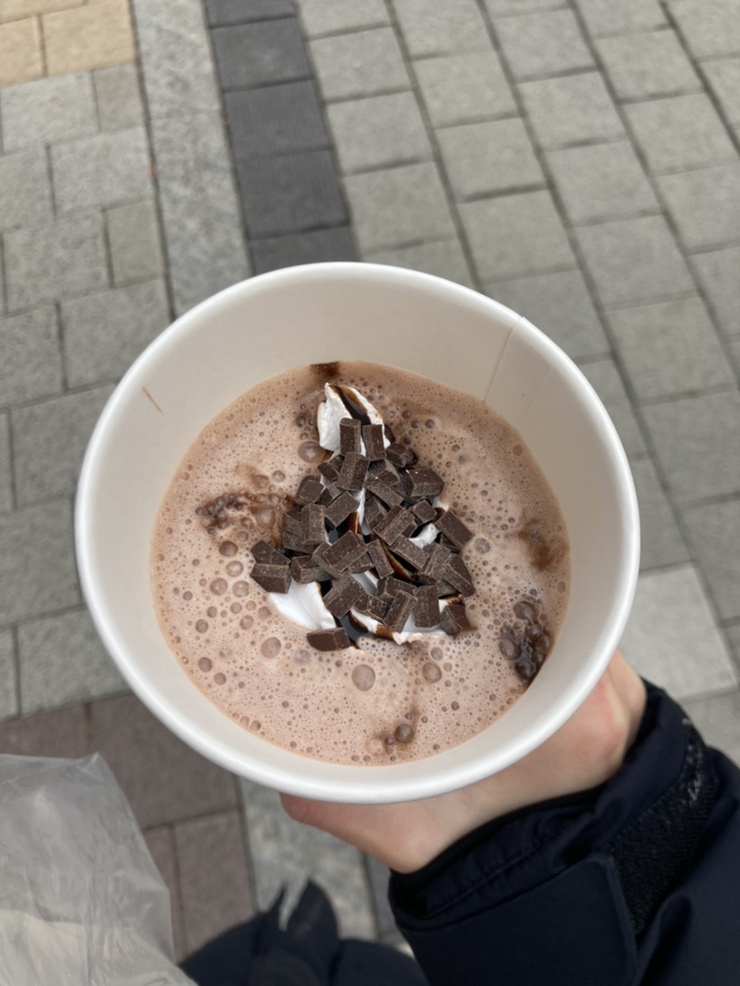 오랜만에 핫초코 돈주고 사먹었네.