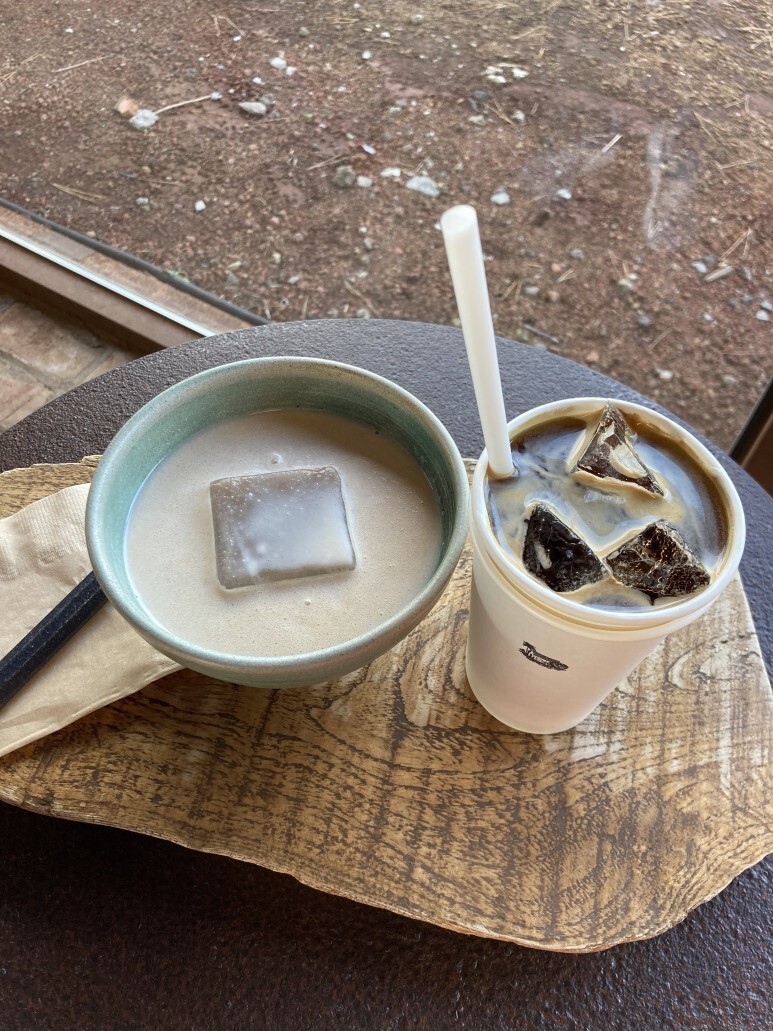 음료는 픽업대에서 내가 직접 들고와야 하는 시스템인데 나무 트레이 크기가 작으면서도 은근 무겁고, 또 거기에 무슨 큰 사발 같은게 하나 올려져있으니 들고오면서 혹시라도 엎을까봐 조마조마하면서 걸어옴ㅜㅋㅋㅋㅋㅋㅋ