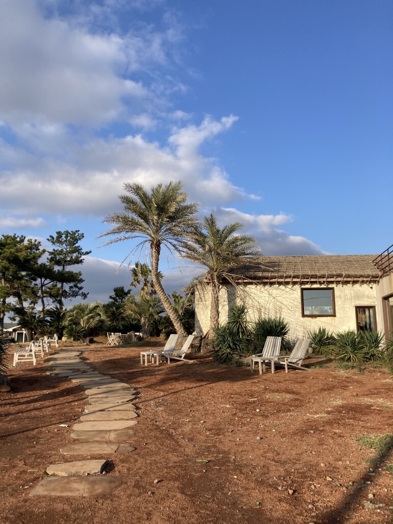 야자수와 붉은 빛의 흙이 이국적인 느낌을 정말 물씬 내주는 카페로