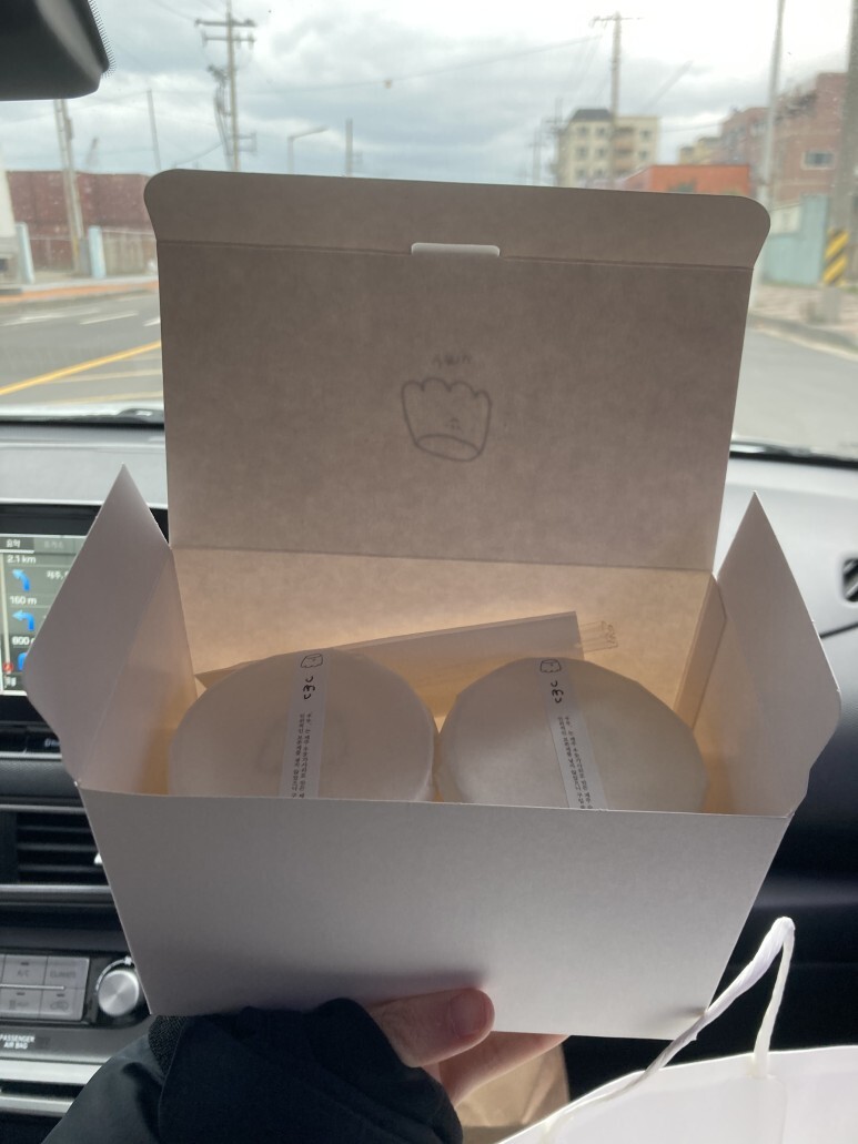 포장하자마자 바로 차에서 바로 먹어주기~