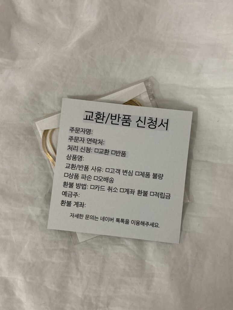 뒤집어 보니 교환/반품 신청서였다!