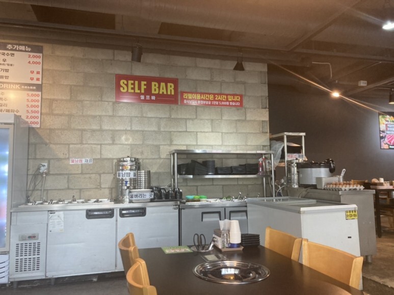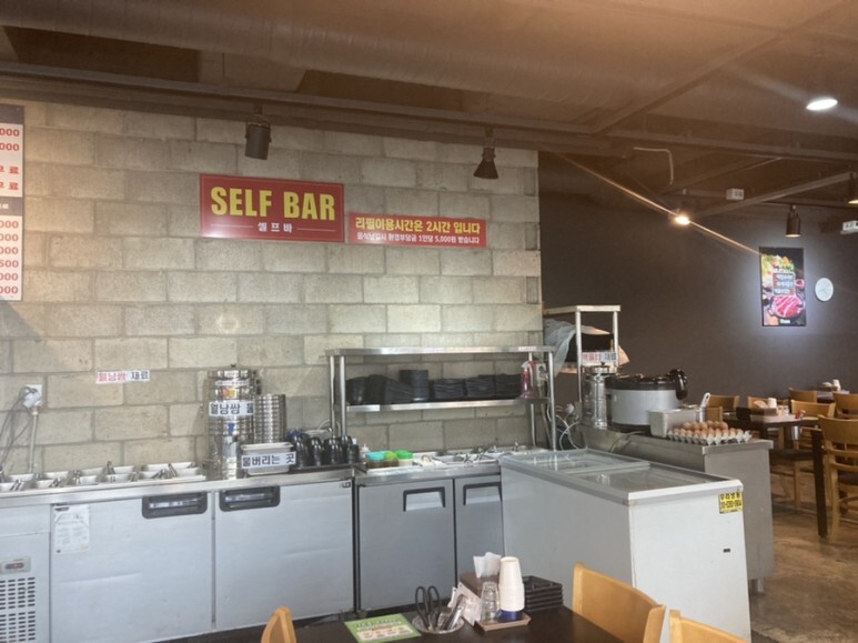 편백찜 익는 동안 바로 셀프바 이용 가능하다.