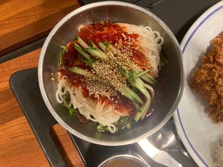 돈가스 메인에 비빔국수가 사이드로 나오는 구성!