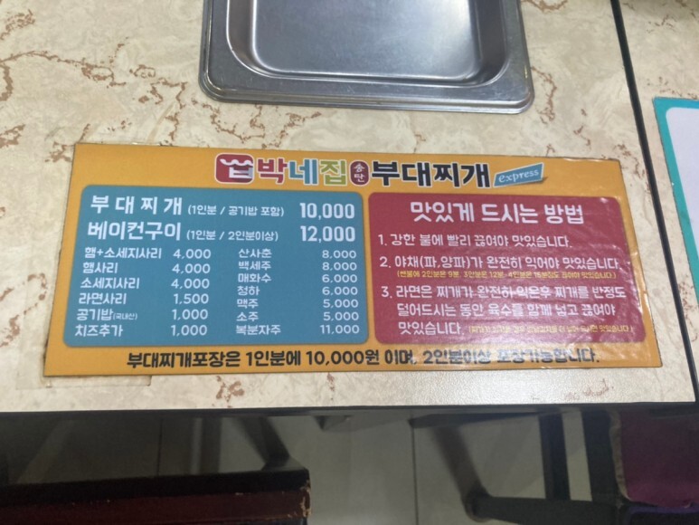 박네집 부대찌개 메뉴는 요러하다!
