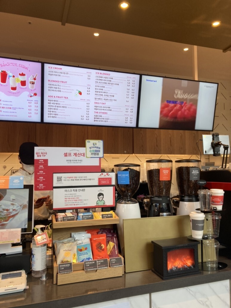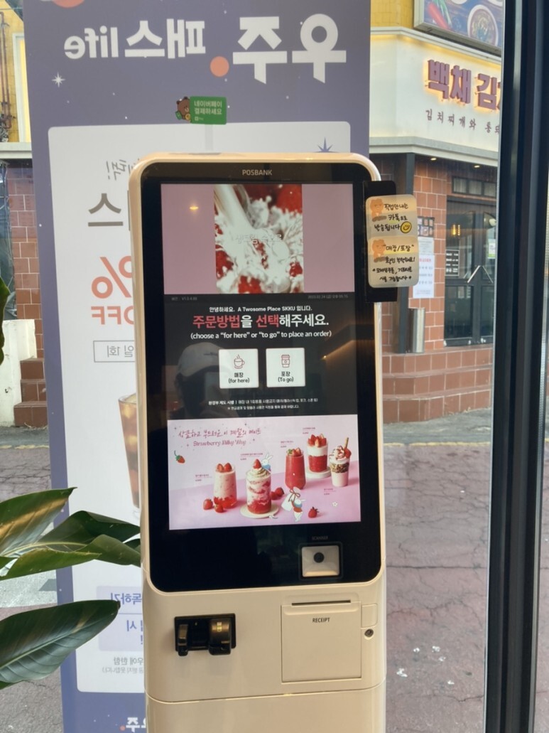 키오스크가 있어 키오스크로 주문도 가능하다.