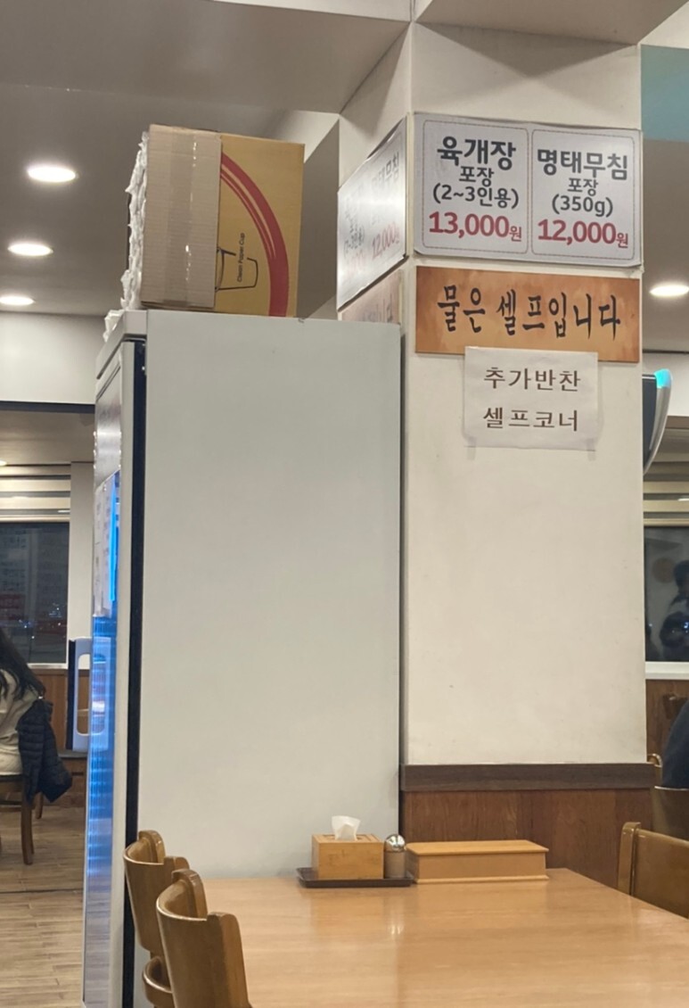물은 셀프여서 냉장고에서 꺼내 먹으면 되고