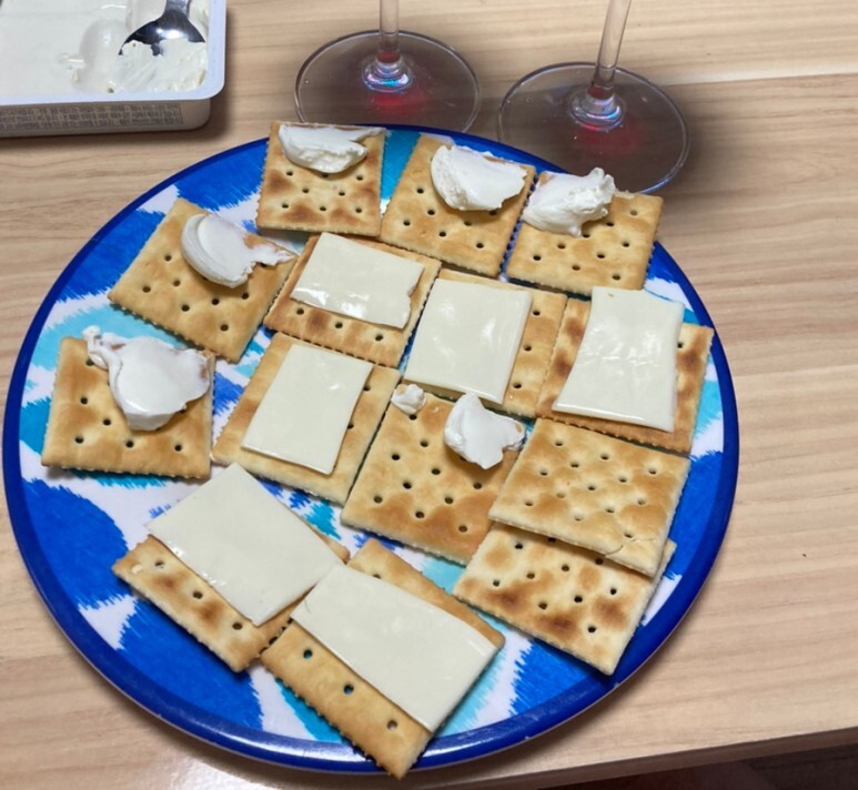 괜히 아이비 과자에 크림치즈&치즈 올려놓고 안주 삼아 기분 내보기.