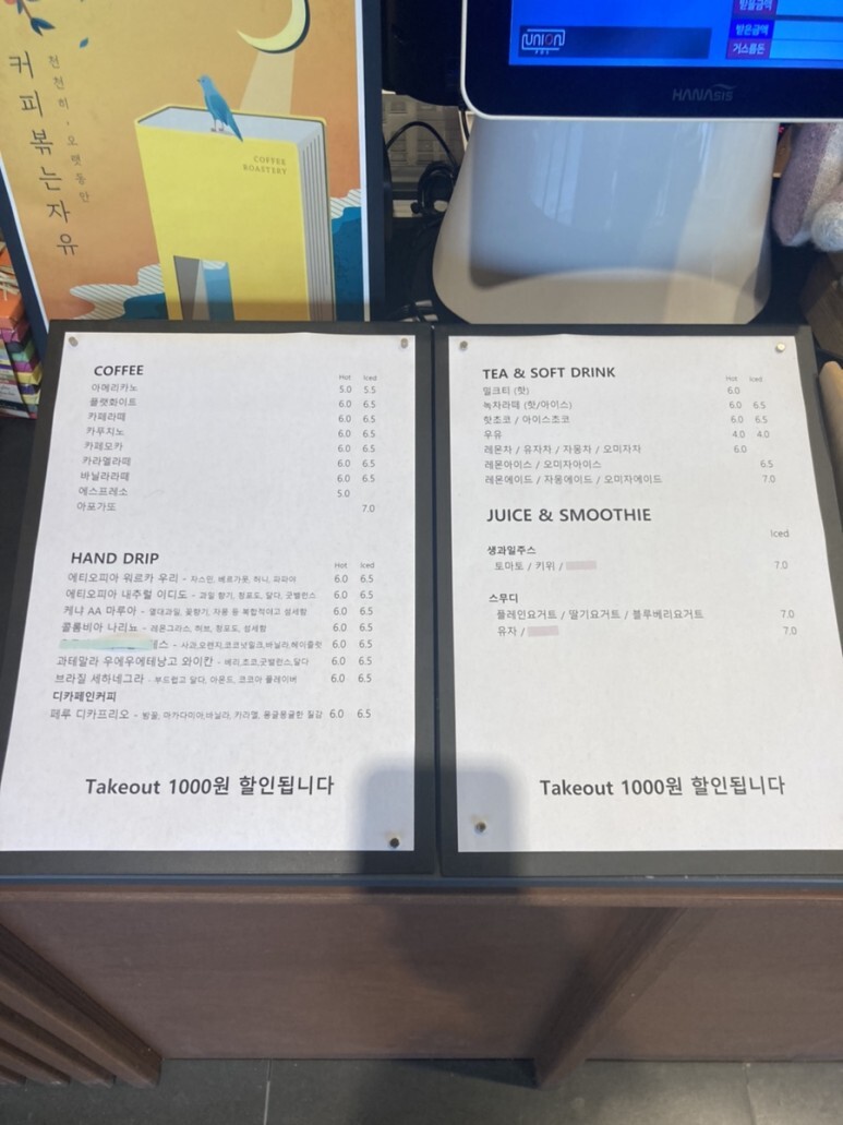 커피 종류는 다양했고 드립커피도 팔고 있었다.