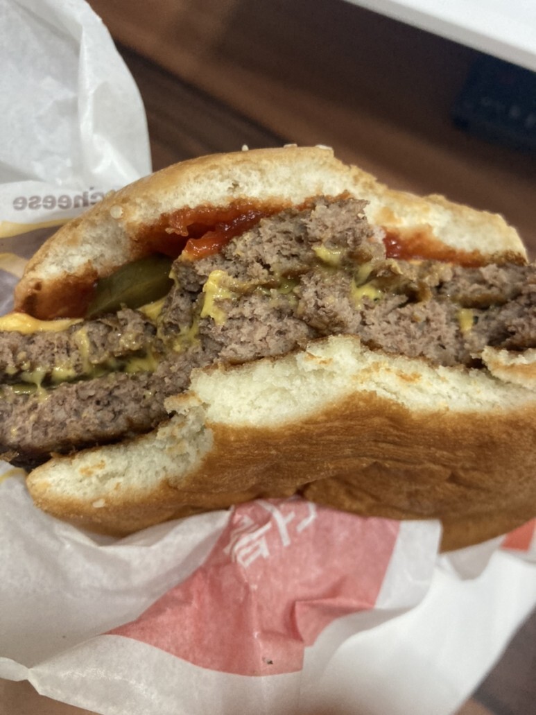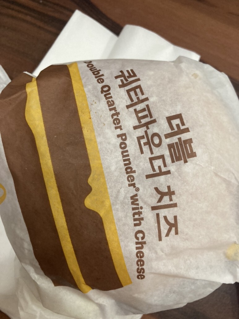 모처럼 먹지 않는 느끼한 햄버거인 더블쿼파치를 사옴.