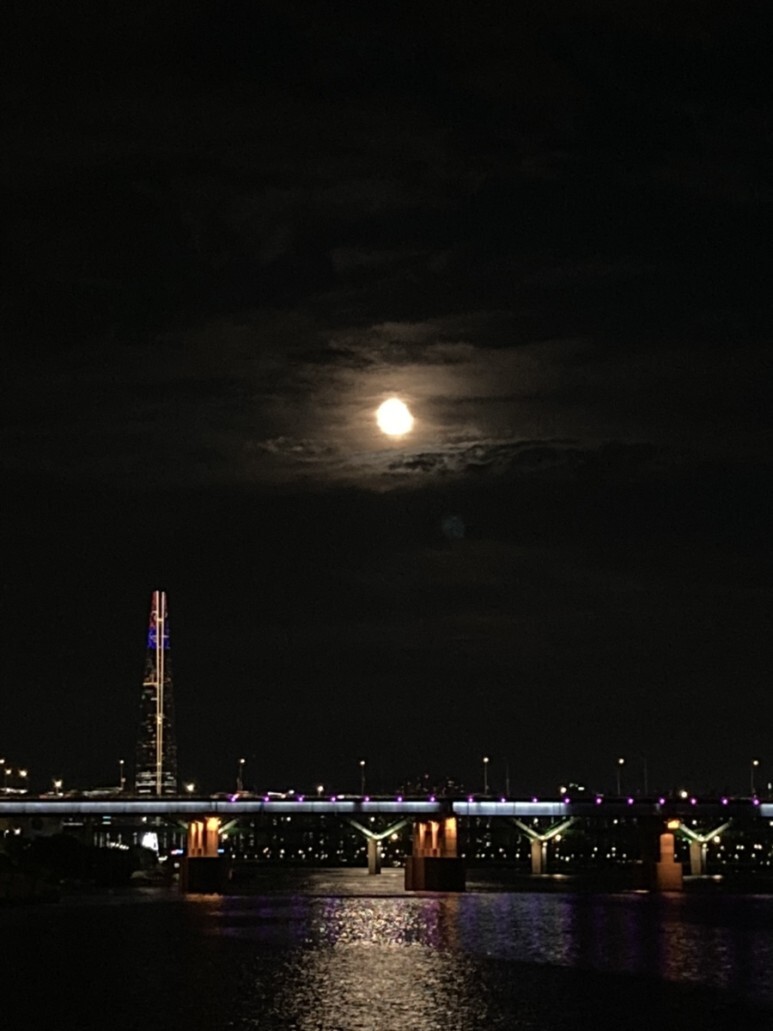 한강에 있던 사람들 다들 걷던 길 멈춰서 달 사진 찍던 날.