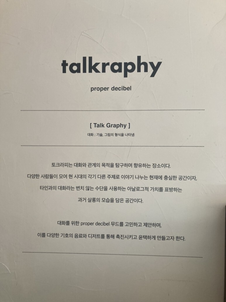 예전에 지도에 저장해 둔 카페 '토크라피'에 왔다.