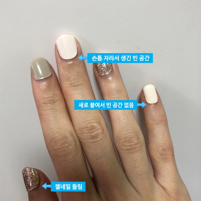 젤 네일이 들려서 틈이 생기는 현상이 있다.