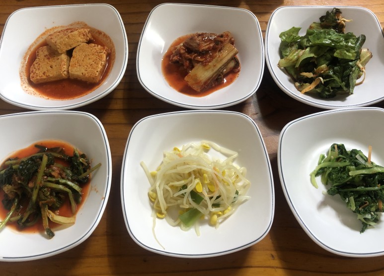 중간에 있는 배추김치?가 간이 약간 쎘다.