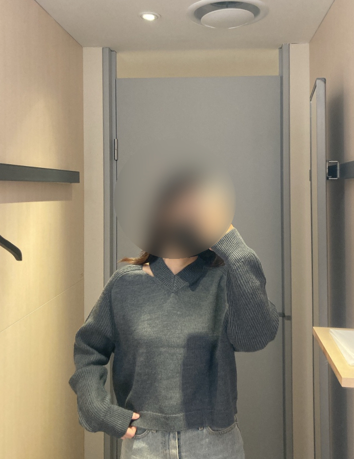 요건 기본 챠콜색 니트인데 넥라인에 절개 들어간 포인트가 예뻐보여서 한번 피팅!