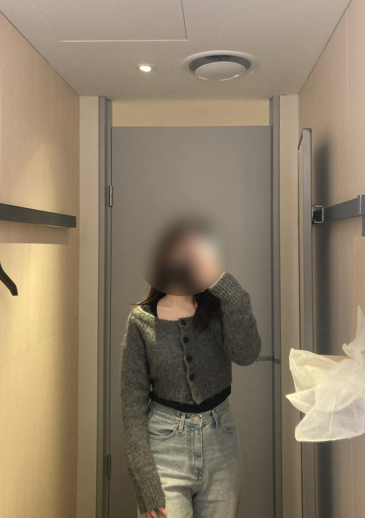 요건 별 기대 없이 입어본 것 치곤 러블리한 무드도 있구 꽤 맘에 드는 볼레로긴 했는데 솔직히 15만원 주고 살 것 까진 아니라는 생각 + 뭐랑 매치할지 감도 안옴이라... 조용히 그냥 피팅만 해봤다.