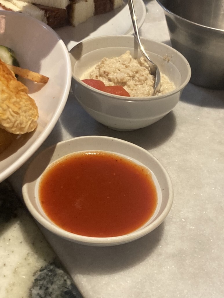 위에 있는 하얀 소스는 코울슬로인데 카츠산도에 곁들여 먹는 거였음!
