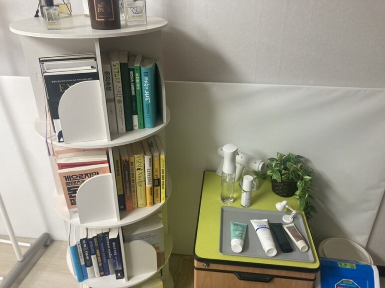 그리고 싱크대도 있고, 핸드크림도 있고, 책도 있고, 커피머신도 있고, 정수기도 있고, 그릇이나 컵도 있고, 일회용품 남은 것들, 펜 등등도 있어서 놀다가 문득 '아 이거 필요한데?'싶은게 꽤 잘 구비되어 있었다.