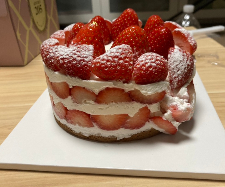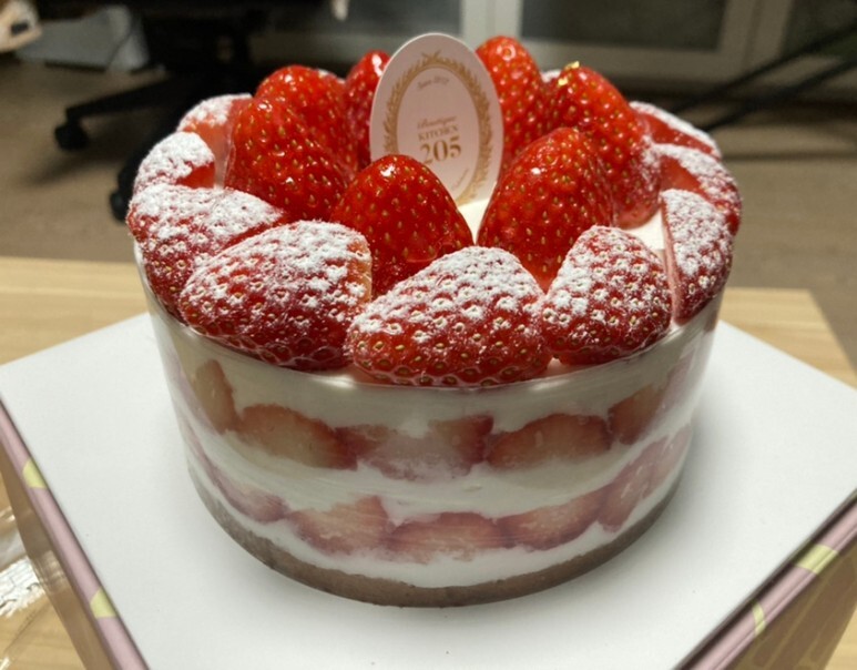 딸기 양은 보이는 겉 부분에 몰려있고 중앙엔 좀 덜한 듯 해 생각보다는 와 많다~까진 아니고, 보이는 것 만큼, 혹은 적당히 들어있네? 정도였다. 그래도 웬만한 딸기케이크 보다는 많이 들어있는 편~