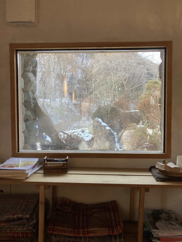 (외진 곳에 위치해 자주는 아니겠지만) 통창이라 아무래도 지나가는 손님들하고 눈이 마주칠 수 있는? 좀 노출된 공간이라
