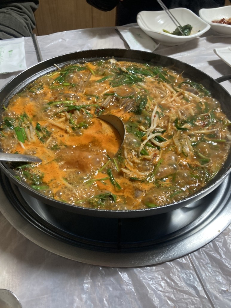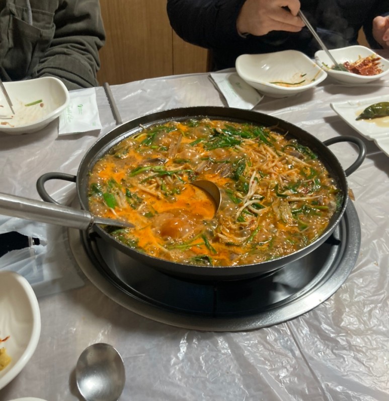 들깨가루가 들어간 좀 얼큰한 국물 베이스라 우리가 생각하는 그 전골 맛을 떠올리면 된다.