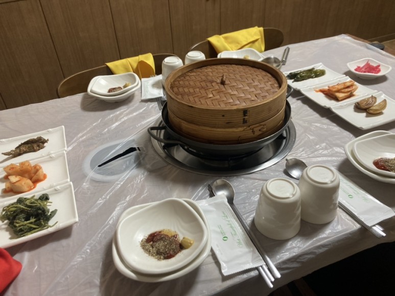 전화로 미리 예약하고 가서 그런지 도착하니 요렇게 기본 찬이랑 수육이 먼저 세팅되어 있었다.