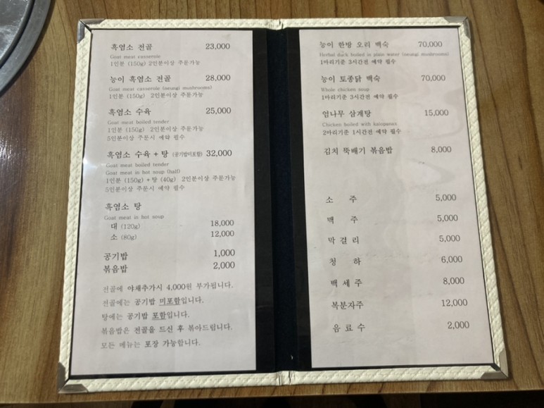 흑염소 전골 2개와 흑염소 수육 2개를 전화로 미리 예약하고 갔다!