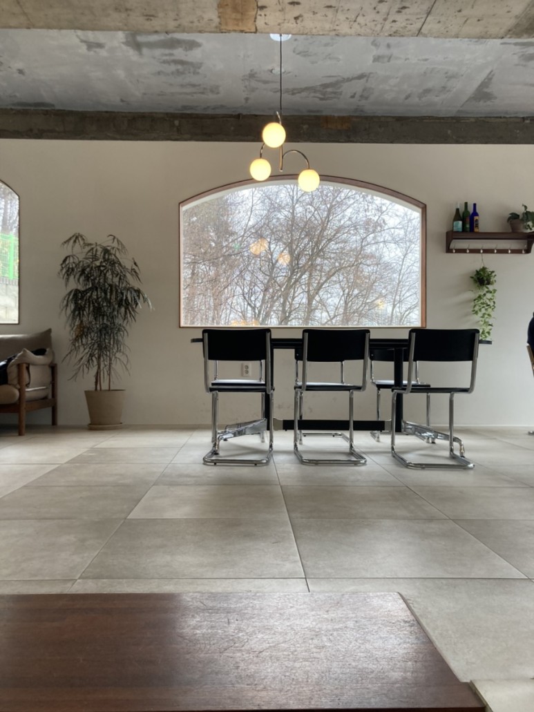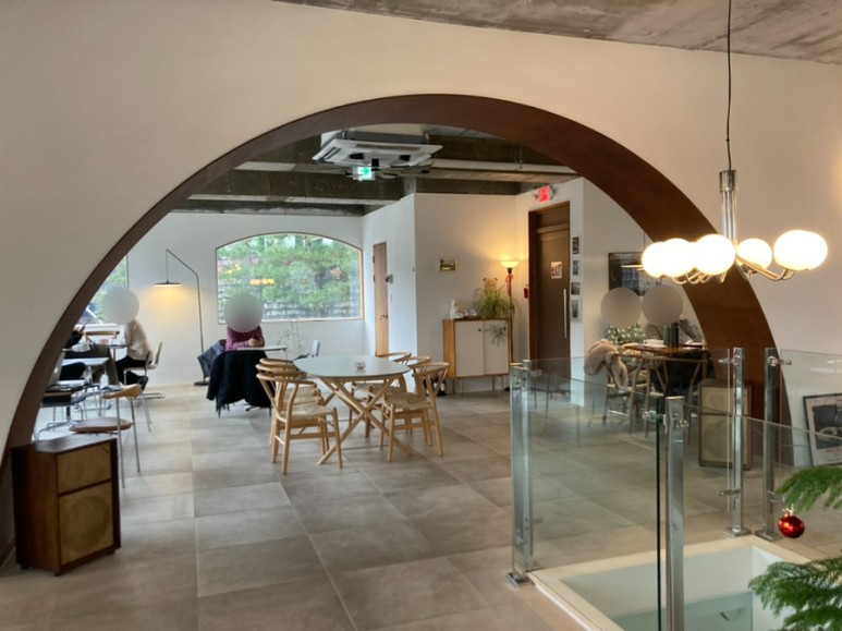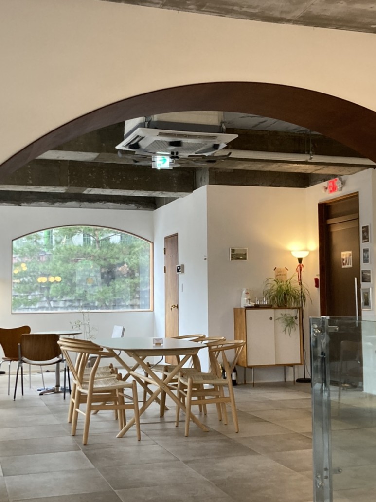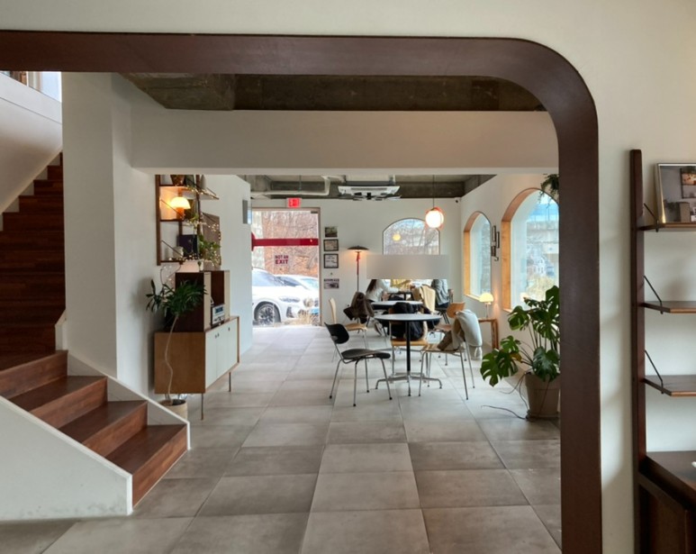 그리고 카페 안 창이나 입구들이 약간 곡선 형태를 이루고 있는데 저런 디테일 하나 하나가 카페 인테리어를 더욱 살려준다.