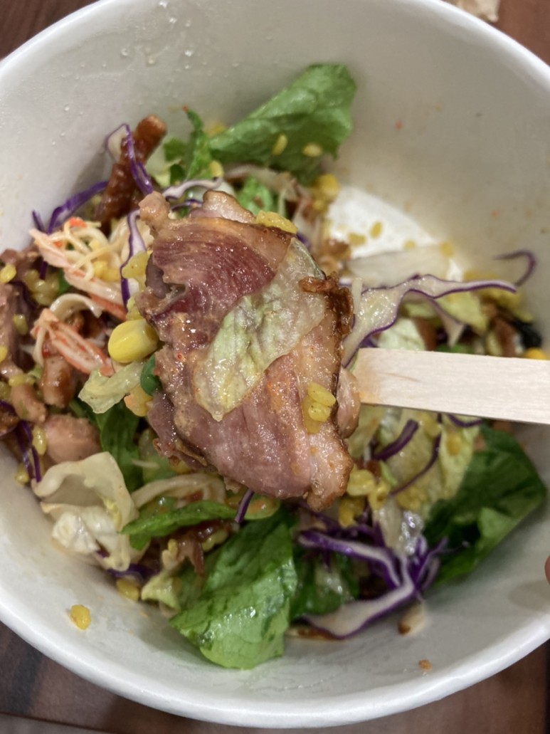 나는 현비밥 베이스 / 오리고기 토핑 / 참깨 간장소스로 주문.
