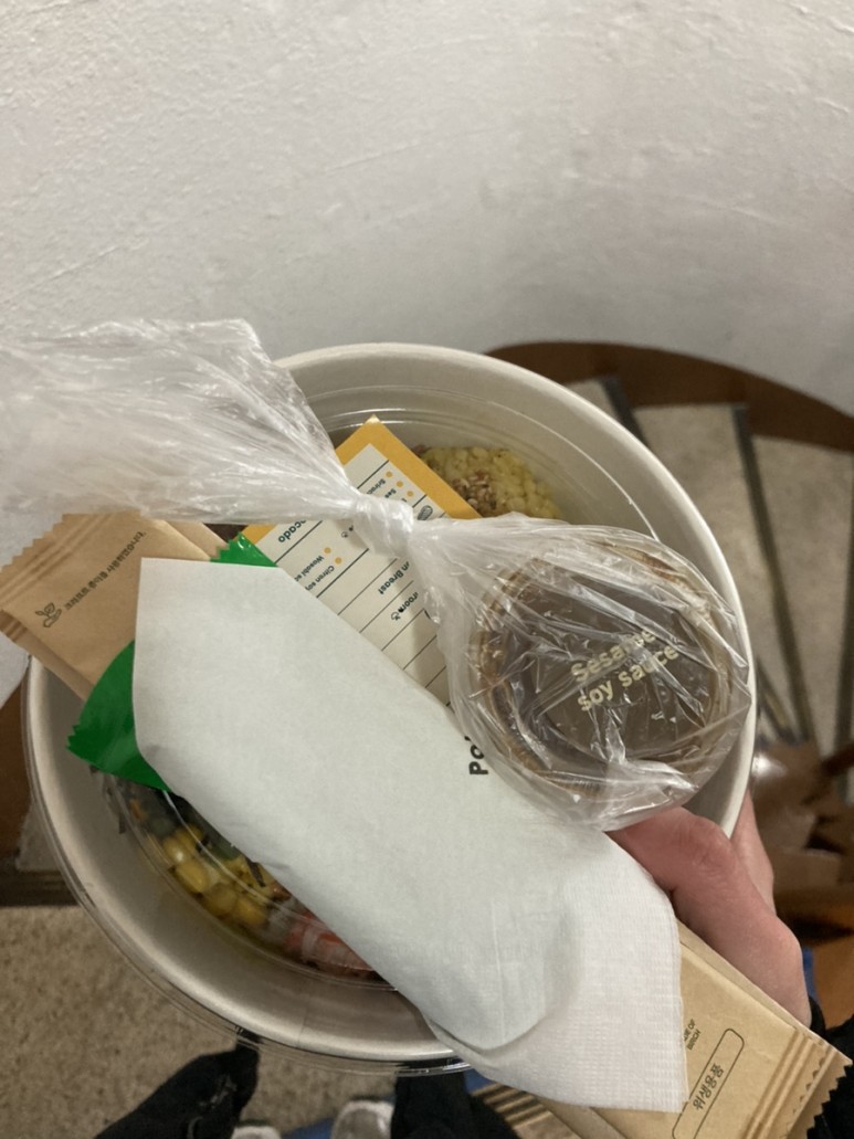 집까지 포케 꽉 쥐고 걸어감.