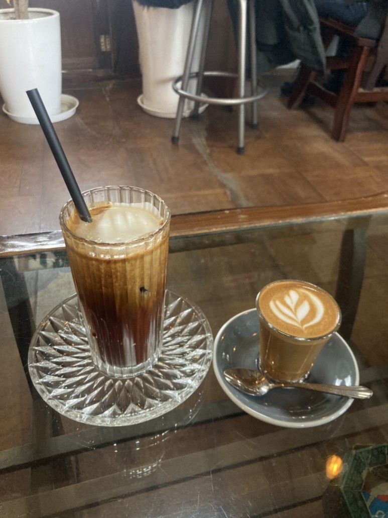 거품 층이 많이 올라간 진한 플랫화이트 느낌나는 커피였다.