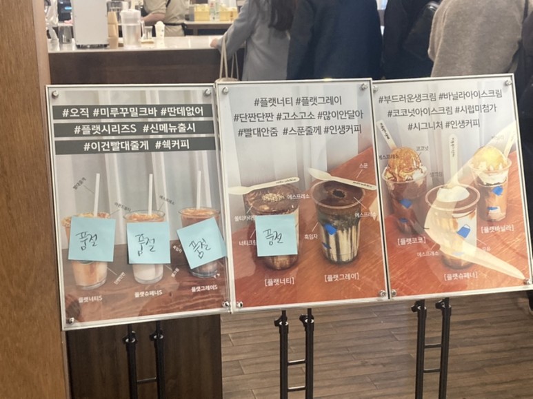 오후에 가니 커피 메뉴임에도 품절인 메뉴가 많았다.
