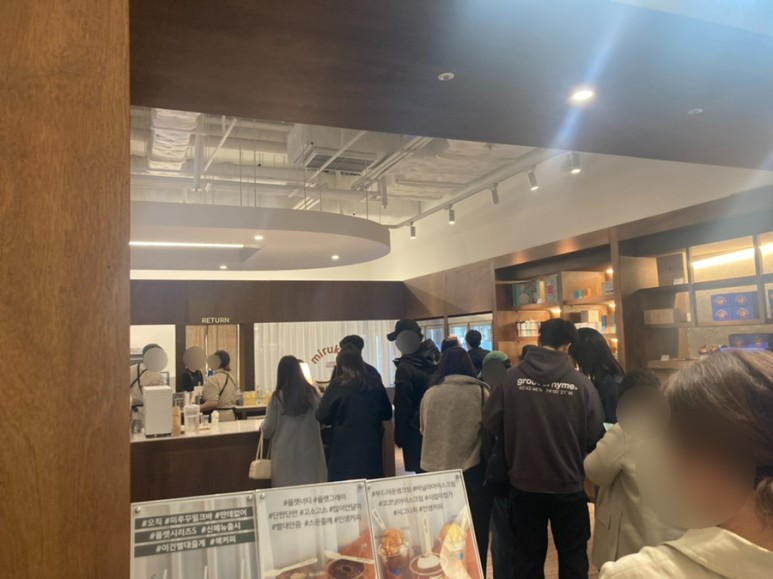 주문할 때 대기줄은 아직도 서는 편이고, 매장 안에 앉는 자리는 만석이거나 좀 기다리면 한 좌석 정도 나는 정도?