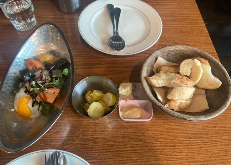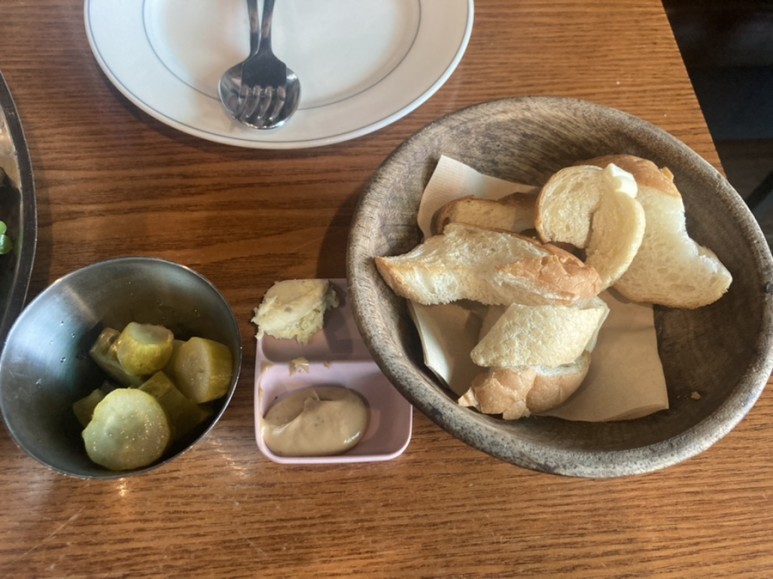 먼저 식전빵과 피클, 그리고 샐러드를 주신다.