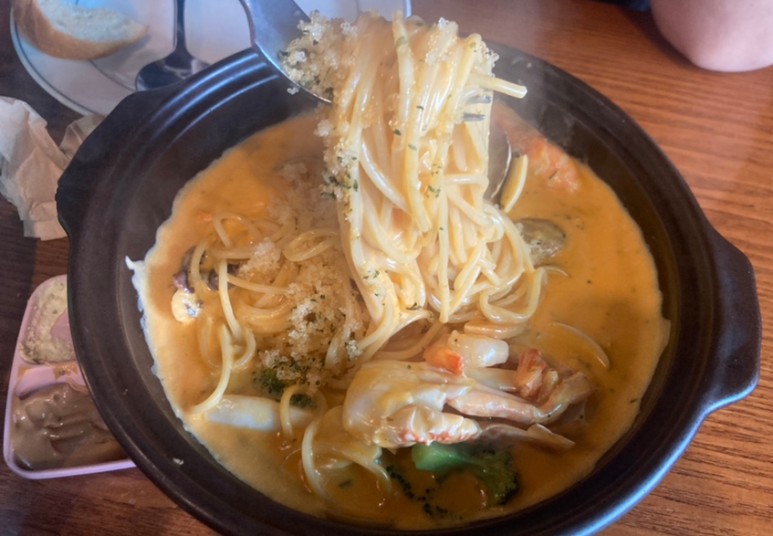 에피타이저 먹으면서 좀 기다리니 나온 상하이 크림 파스타~