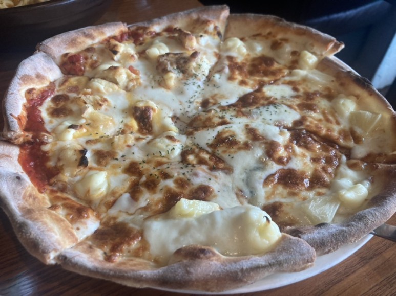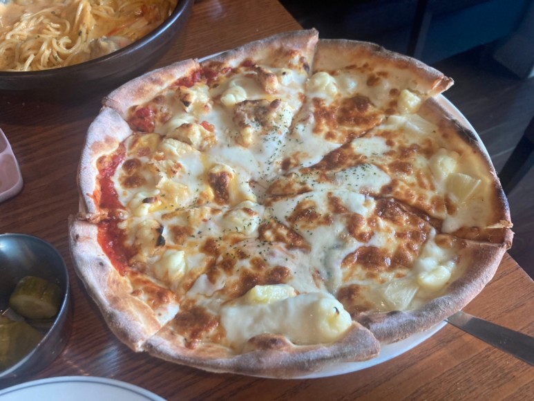 반반피자로 주문했기에 왼쪽은 콰트로피자/오른쪽은 고르곤졸라 피자이다.