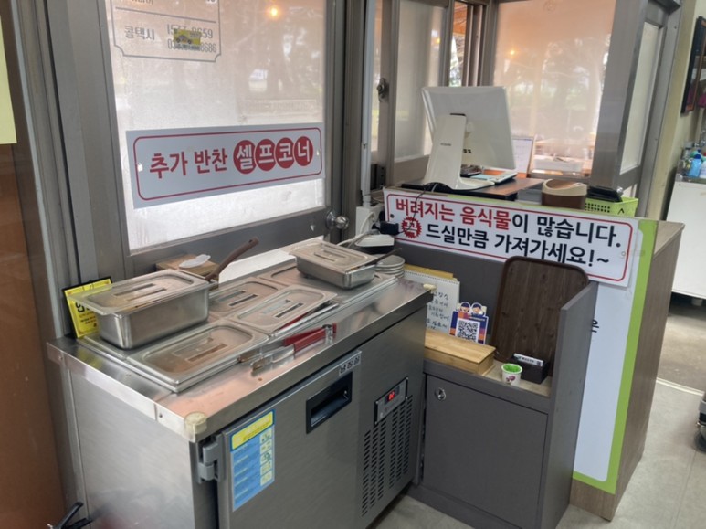 참고로 밑반찬은 추가로 가져다 먹을 수 있는 셀프코너가 있어