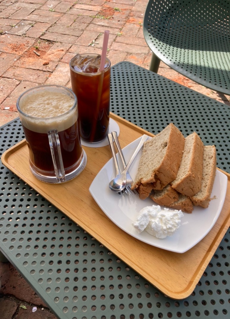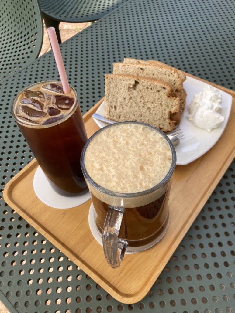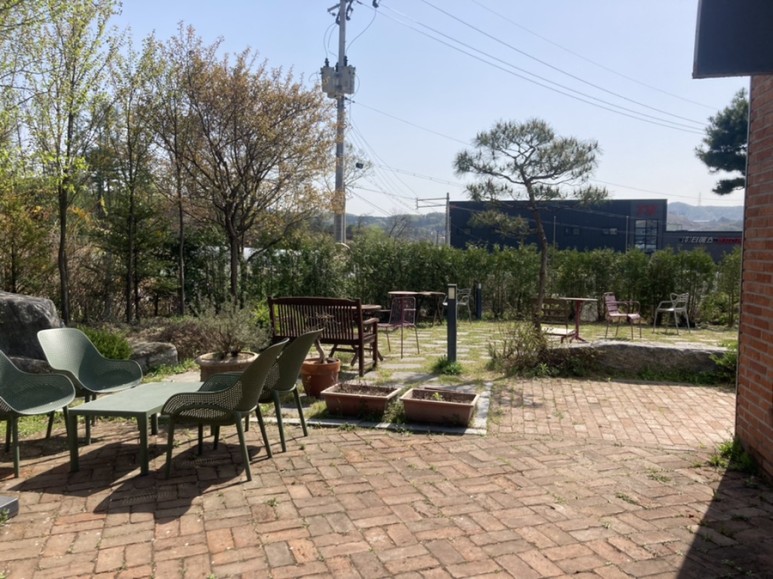 근데 카페 안은 좀 더운 편이었어서 마침 야외 테라스 자리도 있고 날씨도 좋길래 밖에다 자리를 잡았다.